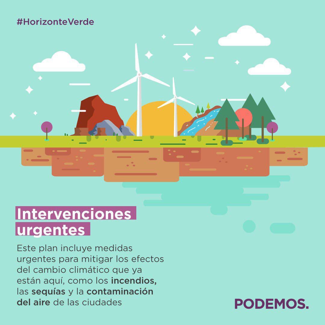 Creación de empleo en rehabilitación de edificios para ser más eficientes reduciendo el consumo energético.El plan #HorizonteVerde de Podemos es una apuesta decidida por el desarrollo de las energías renovables y el cuidado del planeta, pero teniendo muy en cuenta la justicia social.